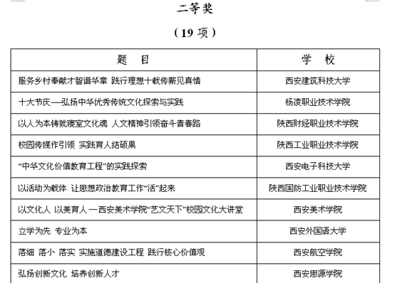 据悉,陕西省校园文化建设成果评选活动由省委高教工委举办,旨在深化社会主义核心价值观宣传教育,牢牢掌握高校意识形态工作领导权和话语权,充分发挥高等学校文化传承创新的重要功能,进一步推动高校校园文化建设。