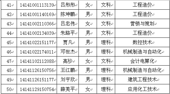 2014年我院在山西省录取文科最低346分,理科最低312分。请以上考生于9月9日——9月10日来校报到,录取通知书将于8月8日通过邮政速递EMS寄出,请注意查收。学院招生办电话:029-33152020 33152021 33152165