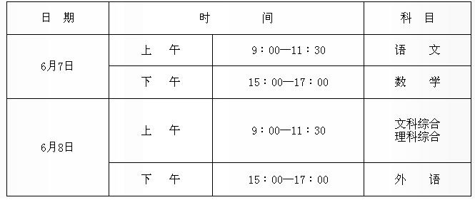 第十八条 全国统考于6月7日至8日举行。各科目考试时间如下: