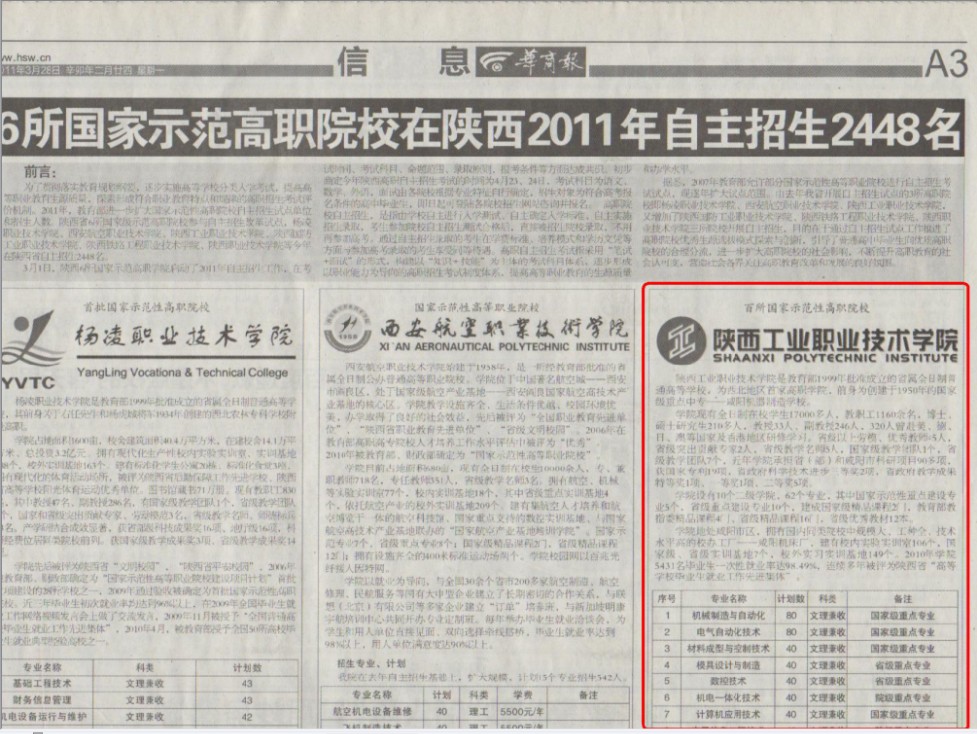 四、报名方式 网上报名+现场确认。符合条件的考生请于4月16日前登录我院招生网,进入网上报名系统(http://zsw1.sxpi.com.cn/jsp/zhaosheng/baoming.jsp)填写报名信息,进行网上报名。考生在网上报名后,持本人身份证原件及复印件(A4纸)、近期一寸免冠彩色照片4张、报名考试费200元,并如实提供2011年普通高考准考证号,于4月1日—16日到我院招生办现场办理报名资格确认手续,领取准考证,参加4月23日的自主招生考试。