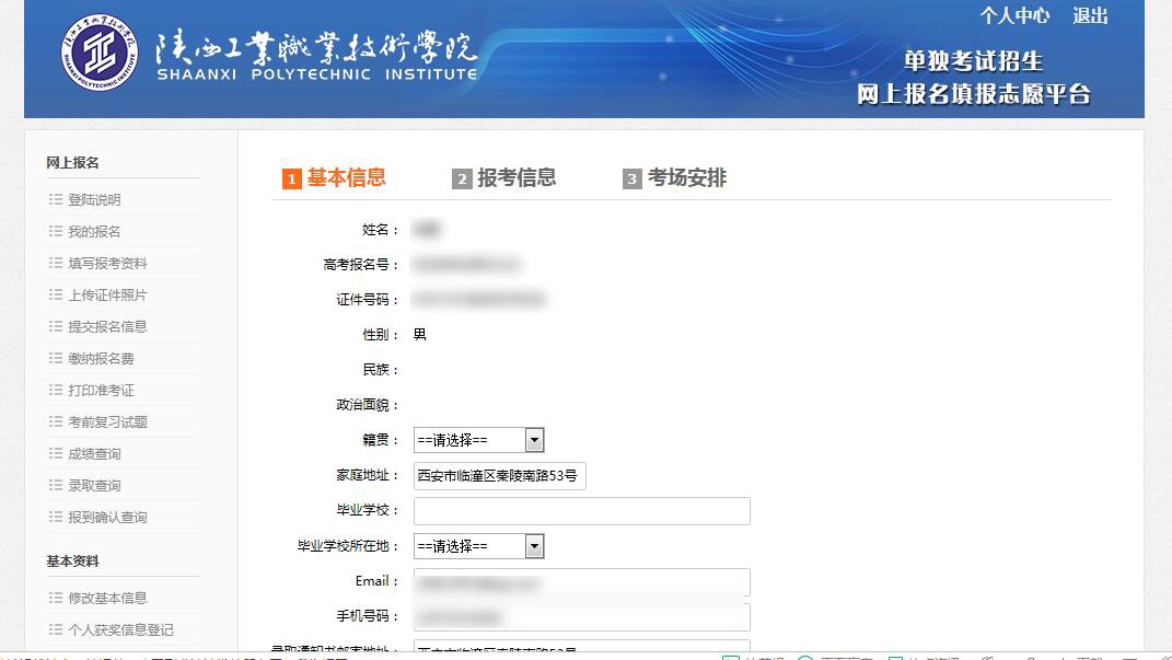 ②登录系统修改默认密码后点击“填写报考资料”,按照流程如实填写个人信息及报考专业。