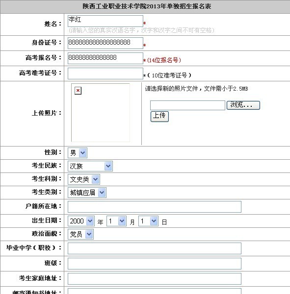 第三步:填写自主招生报名表相关信息。填写完表格信息,点击底部的“提交”,完成报名流程并查看个人信息。如果个人信息有误,点击底部的“修改”按钮修改个人信息。如果个人信息无误,点击“打印”按钮即可完成报名流程。提示:请将个人信息及专业志愿填写完整。