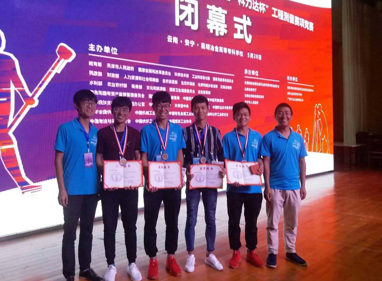 5月27日,2018年全国职业院校技能大赛“工程测量大赛”赛项比赛在云南昆明顺利闭幕。来自全国30个省市自治区的83支队伍进入决赛。由土木工程学院教师宋祥、纪海源指导,工程测量1601、1602班王伟兵、张恒、曹雄、郝春阳4名同学获本次比赛团体三等奖。