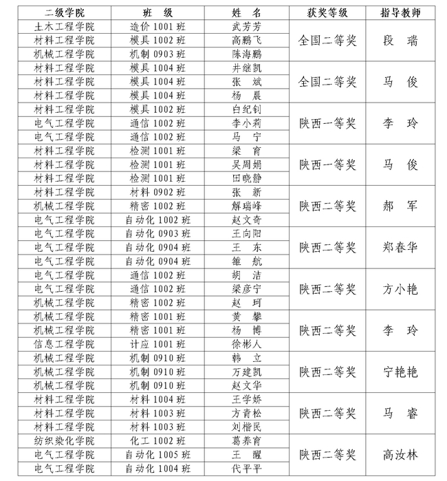 近日,2011年全国大学生数学建模竞赛成绩揭晓。根据省教育厅《关于公布2011年全国大学生数学建模竞赛陕西赛区获奖名单的通知》(陕教高2011年52号)精神,我院共获11项表彰,其中,全国二等奖2项,陕西省一等奖2项、二等奖7项。