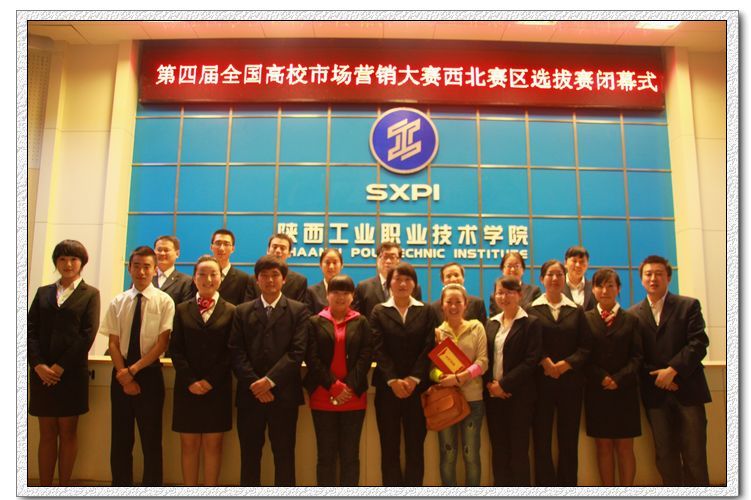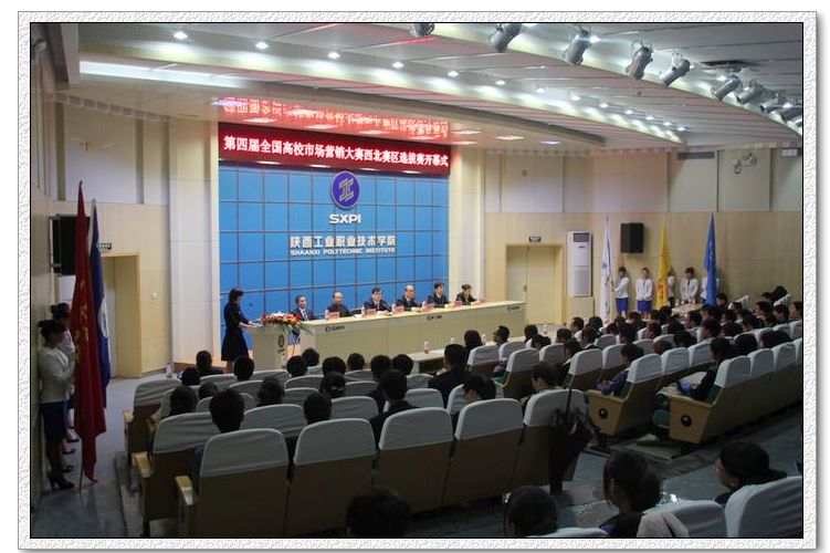 2011年9月17日上午,由教育部考试中心、中国市场学会主办,中国中小企业联合会协办,陕西工业职业技术学院承办的第四届全国高校市场营销大赛西北赛区选拔赛,在我院学术会堂隆重开幕。大赛评委会主任李富荣、陕西工业职业技术学院副院长王晓江教授、教务处处长王津教授及物流管理学院院长李选芒、党总支书记王平勋、副院长王永莲出席大赛。本次大赛共收到20项文案及PPT作品,共有来自省内外的7所高校的20支参赛队参加,其中包括8支本科院校参赛队和12支高职院校参赛队,物流管理学院派出了4支参赛队参加大赛。