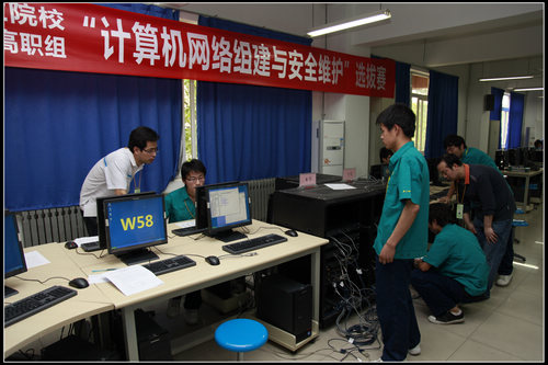 为充分发挥技能大赛引领高职教育“做中学、做中教”专业教学改革的平台作用,选拨优秀团队代表我省参加“2010年全国职业院校技能大赛”,由陕西省教育厅主办、陕西省高职高专教育学会承办、我院协办的“计算机网络组建与安全维护” 项目陕西省选拔赛5月15日在行知楼二楼信息工程学院网络技术实训室举行。陕西省教育厅高等教育处袁宁处长、刘豫川副巡视员、学院院长崔岩、副院长王晓江、党政办副主任朱忠军、教务处处长王津、信息工程学院院长梅创社、党总支书记何玉辉、副院长夏东盛及相关大赛组织人员出席了开幕式。