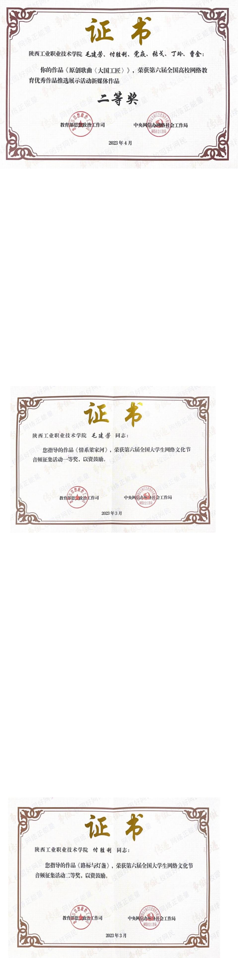 喜报!我校在第六届“全国大学生网络文化节”活动中斩获佳绩!近日,教育部思想政治工作司公布了第六届“全国大学生网络文化节”和“全国高校网络教育优秀作品推选展示活动”获奖名单,作为全国高校网络思政领域最高级别竞赛之一,我校与全国高校同台竞技,在35225件作品中,获一等奖1项,二等奖2项。其中音频作品《情系梁家河》荣获全国一等奖,《路标与灯盏》荣获全国二等奖,原创歌曲《大国工匠》荣获全国二等奖,是陕西省唯一荣获全国一等奖项的高职院校。